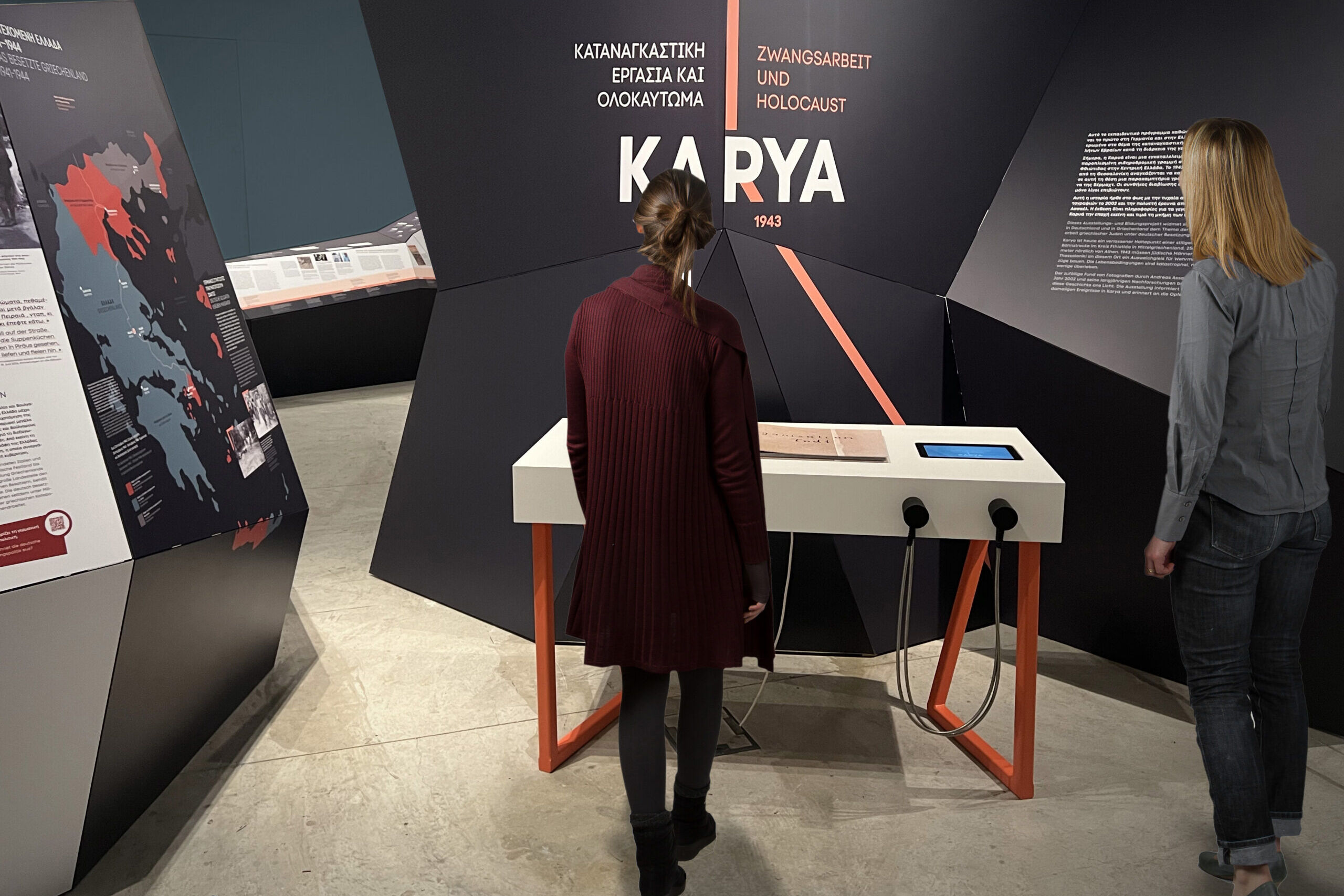 Herzstück der Ausstellung sind Fotografien eines deutschen Ingenieurs der Organisation Todt, der während des Zweiten Weltkriegs in Griechenland Bauprojekte für die Wehrmacht leitete. Die Bilder dokumentieren die Zwangsarbeit jüdischer Männer aus Thessaloniki, die 1943 in Karya einen Felsen für ein Ausweichgleis an der Bahnstrecke zwischen Athen und Thessaloniki abtragen mussten. Sie zeigen Baracken, Bauarbeiten, Wachpersonal und die unmenschlichen Arbeitsbedingungen; die meisten der Zwangsarbeiter wurden später in Auschwitz ermordet.