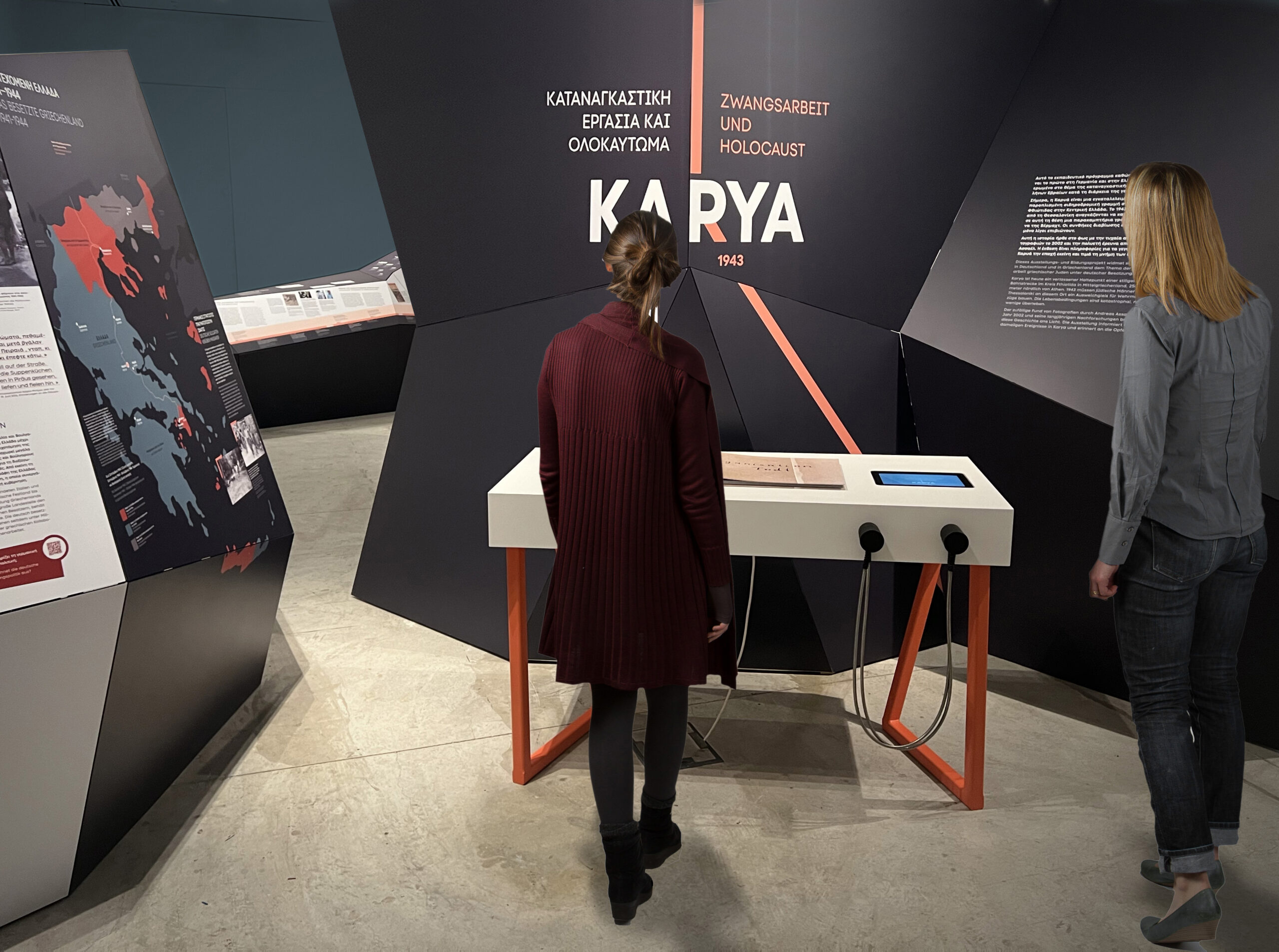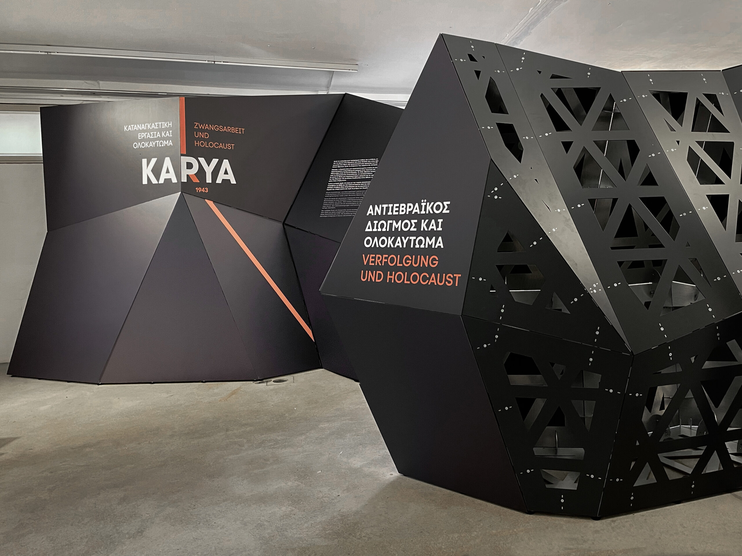 Die Ausstellung beleuchtet multimedial die Geschichte jüdischer Zwangsarbeit im Kontext von Holocaust und deutscher Besatzung. Die Ausstellungsarchitektur greift abstrakt Landschaft und Baustelle auf, Berichte der wenigen Überlebenden sind in Form einer Graphic Novel integriert. Die dreisprachige Ausstellung entstand in deutsch-griechischer Kooperation und wandert in zwei baugleichen Fassungen durch Deutschland und Griechenland.